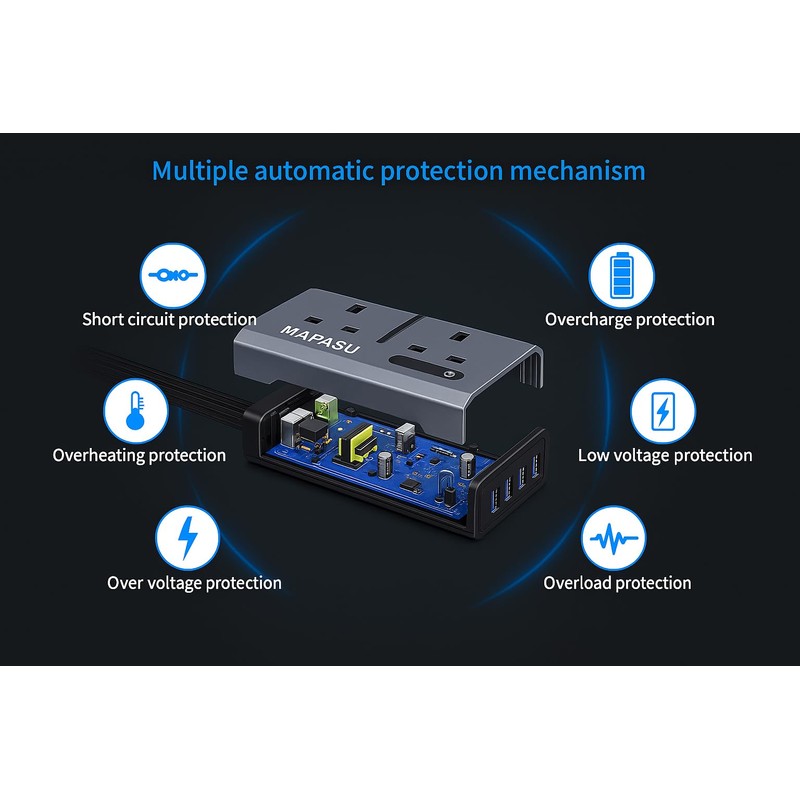 - 【SUPERIOR SAFETY】 Built-in fuse to protect your device and comprehensive multiprotect safety system includes overcharge protection, short circuit protection,temperature control, under voltage charging,over voltage overloads protection.It helps protect your charging devices and extends the time of being used.