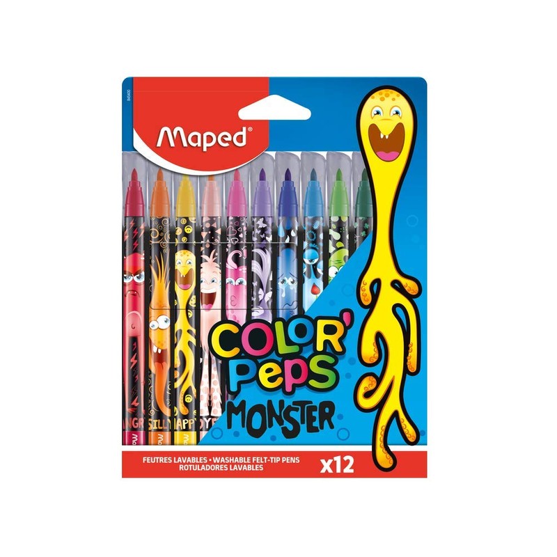 - Washable and tough Maped Color Peps felt pens featuring funky monster-themed designs!