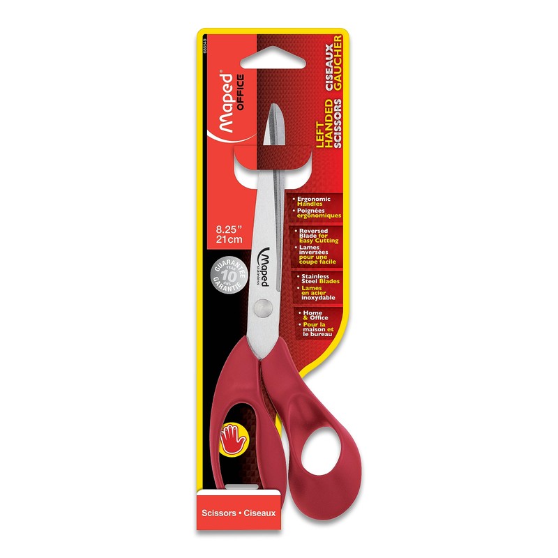Maped Expert Left Handed Scissors, Stainless Steel Blades, 21cm/8.25-Inch, Red Handles (068650)