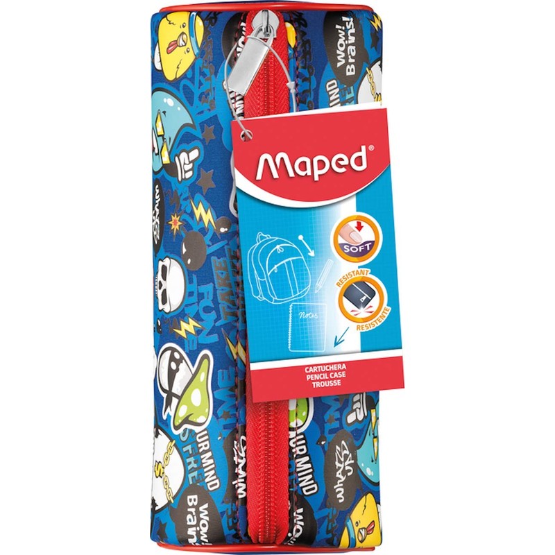 Maped - Pencil case, pencil case, made of neoprene, large, round shape, 21 x 8 x 8 cm, with street art graffiti motifs