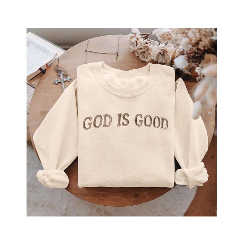 - 【Embroidered Graphic Design】Featuring a bold and meaningful “GOD IS GOD” embroidered or printed design, this women's crewneck sweatshirt combines fashion with faith. The drop shoulders, crew neck, and oversized silhouette offer a relaxed and stylish fit for everyday wear. The slight stretch and standard sizing make it flattering and easy to wear for all body types.