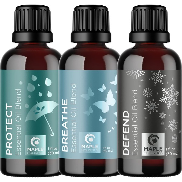 Maple Holistics Maple Holistics Essential Oil Set - Breathe Protect and Defend Purifying Essential Oil Blends for Diffuser Aromatherapy and Baths - Relaxing Essential Oils for Diffusers for Home