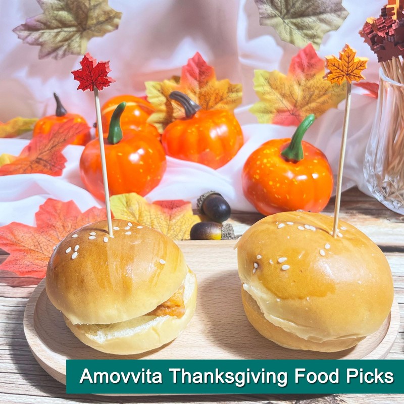 - Includes 100 pcs maple leaves fall decorative toothpicks. Our toothpicks Designed with two colores Maple Leaves-They are perfect every charcuterie board, cupcake or combination of fruits, veggies, or cheese, these fall toothpicks add a touch of fun to all of your creations. They make the food appetizers taste and look better!