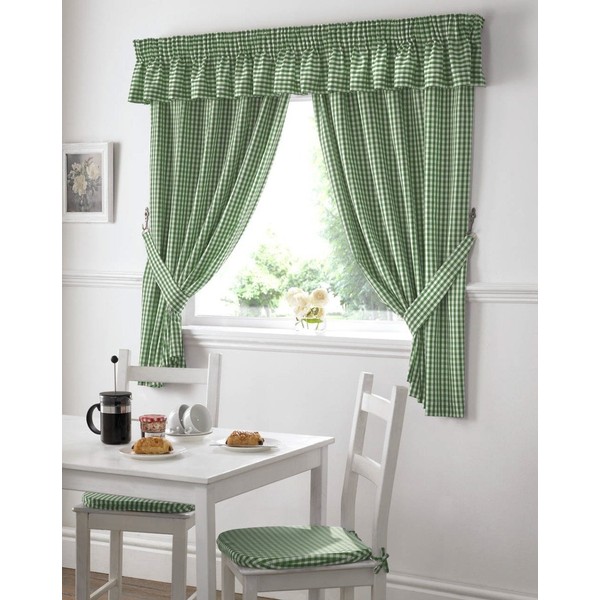 Maple Textiles Gingham Kitchen Curtains Green 46 x 42, Polyester, 107 l x 117 h centimeters