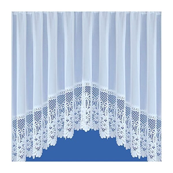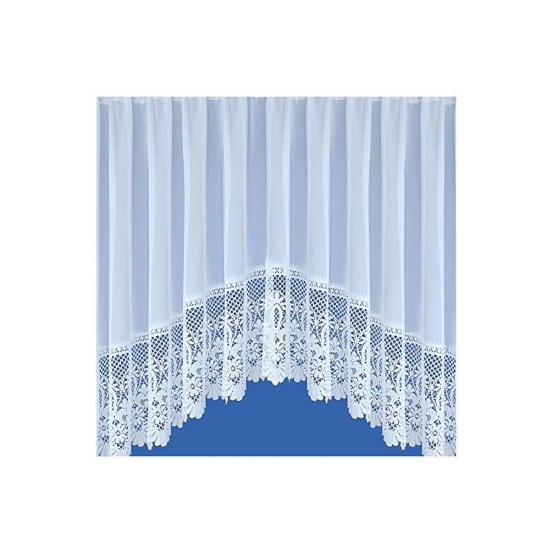 Maple Textiles Jardiniere Net Curtain Plain White with a Lace Scalloped Bottom Base Available in 3 Width and 5 Drops(Jardiniere 100" Wide x 48" Drop)