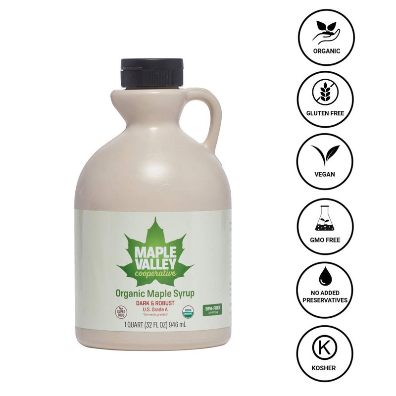 - Maple Valley Organic Maple Syrup Grade A Dark Robust, 32oz Quart Plastic Jug (Bpa Free)