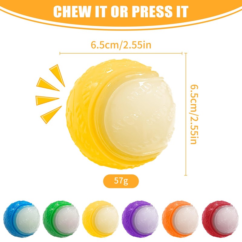 Product Description:Keep your pup entertained day and night with our 6-pack of glow-in-the-dark dog balls! Each 6.5cm diameter ball is specially designed for small to medium breeds, featuring a loud squeaker that triggers your dog's natural play instincts. Made from durable, non-toxic rubber, these bouncy balls are perfect for aggressive chewers and teething puppies.
