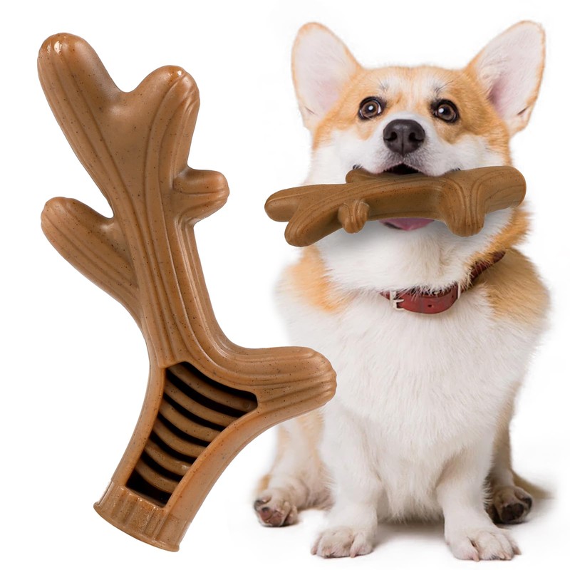 - 【Unique Deer Antler Shape】: The Hard Dog Toy's Unique Deer Antler Shape is attractive for your dogs, the botton of the deer antler can hold peanut butter, which will make this dog chew toy more insteresting and attracting for your dogs!
