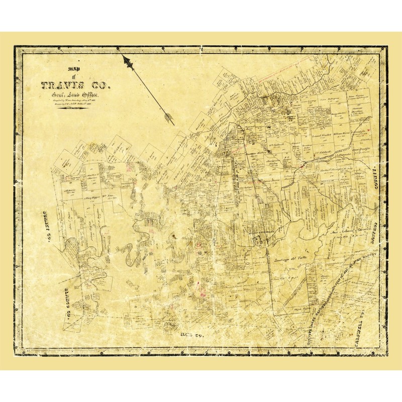 Maps of the past Historic County Map - Travis County Texas - Rosenberg 1861 - 27.28 x 23 - Matte Canvas