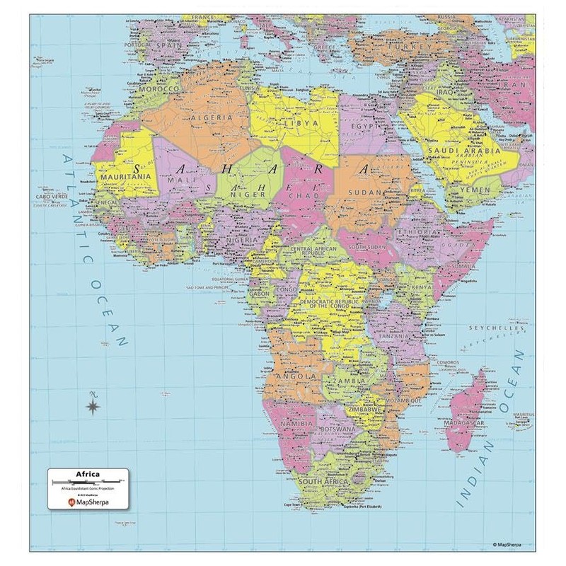 MapSherpa: Africa Political Wall Map - Compact - 16 x 17 inch Poster - Front Lamination