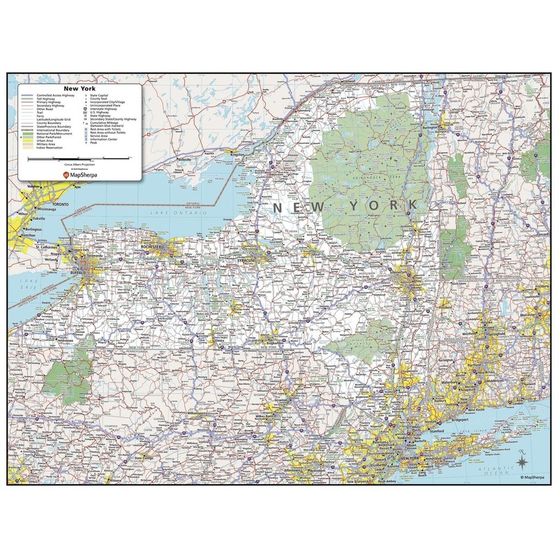 MapSherpa: New York State Wall Map - 24 x 31.5 inch Poster - Front Lamination