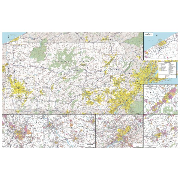 MapSherpa: Pennsylvania State Wall Map - Large - 32 x 48 inch Poster - Front Lamination