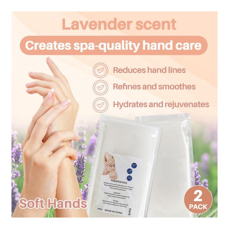 - Easy to use:Fill with Paraffin Blocks for Paraffin Wax and melt, soak hands or feet 3-5 times, then put on PE gloves and cotton gloves and tear off after 15-20 minutes. ThisParaffin Blocks of Lavender Scent for Paraffin Wax is gentle , and the lavender scent also provides a more relaxing and comfortable experience when performing hand treatments. The solid form is easy to store