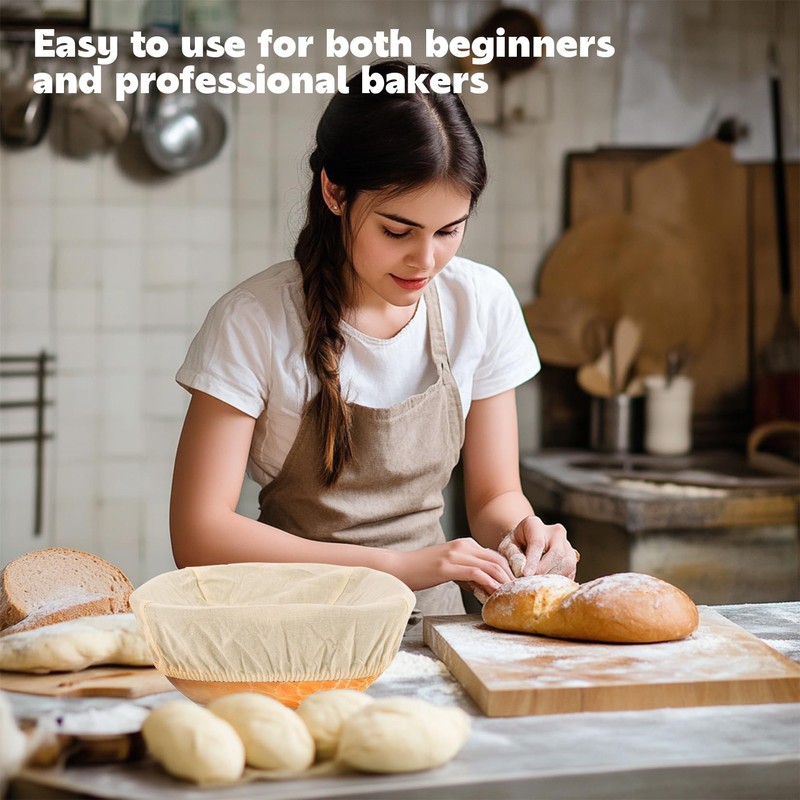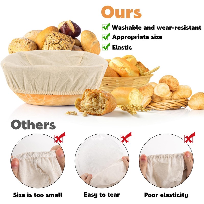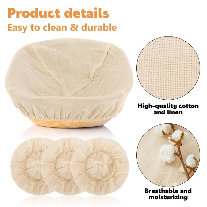 - Durable & Reusable Liner:Using the banneton liner can effectively prevent the dough from sticking to the banneton,making the dough easily released. Moreover,cleaning is much simpler, and the durable linen and cotton material can be washed and reused