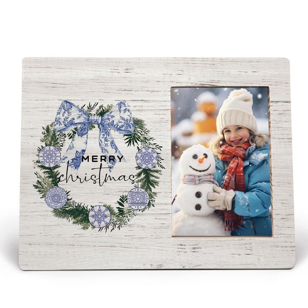 MAQIKA Chinoiserie Christmas Picture Frame, Christmas Frame Gifts for Women, Blue and White Christmas Photo Frame, Chinoiserie Gifts for Christmas, Snowflake Wreath Decor Wood Photo Frame for 4x6