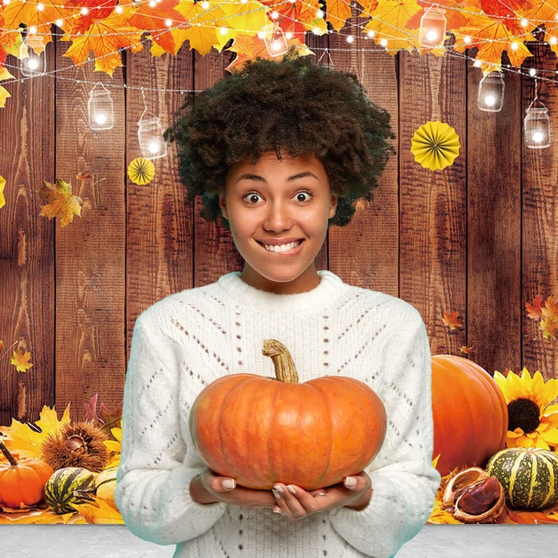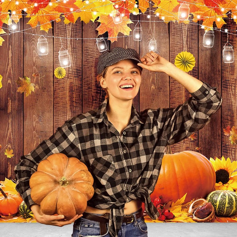 MAQTT 7x5ft Thanksgiving Photography Backdrop Autumn Pumpkins Harvest and Maple Leaves Background for Party Decoration Autumn Harvest Party Supplies