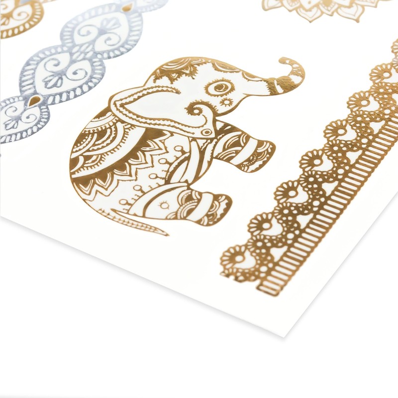 Maquillali Tatuaje Temporales Metálicos – 6 Hojas de Tatuajes Adhesivos Brillantes y Ultra Resistente con Multi-diseños (Diseño-2)