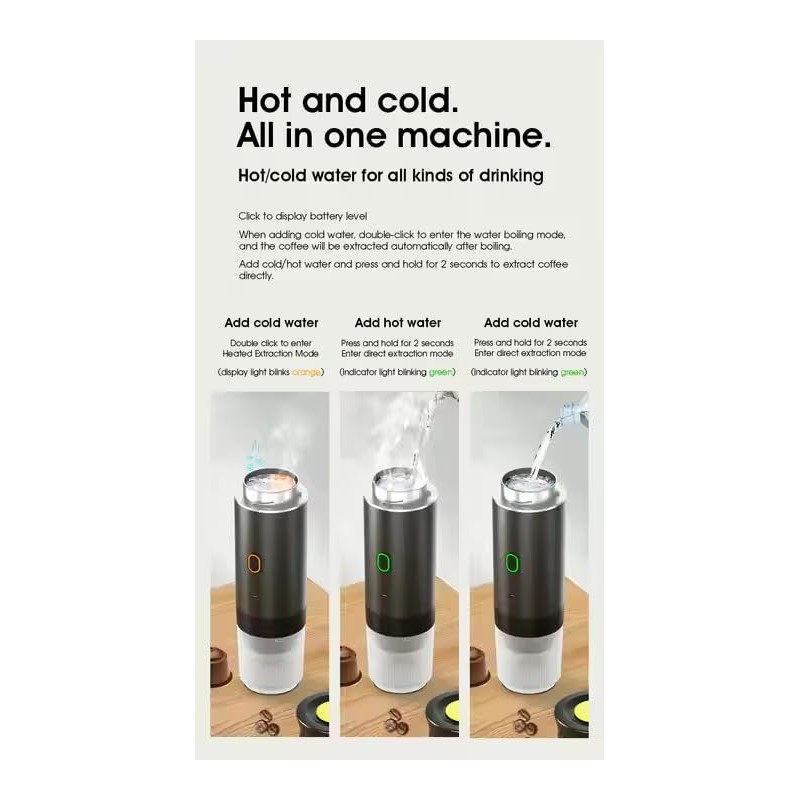 - Cafetera eléctrica de viaje: la operación con un solo toque prepara café caliente o helado en minutos. Diseño aislado a prueba de fugas. Incluye un vaso reutilizable, filtro, soporte para cápsulas y piezas fáciles de limpiar.
