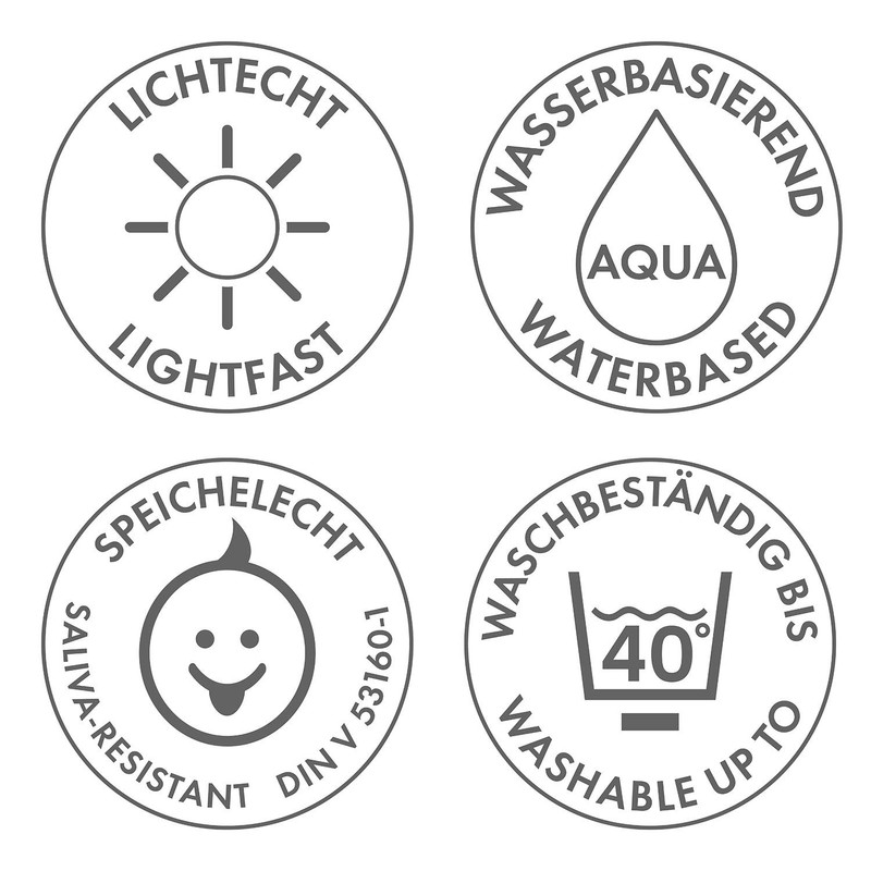 - After fixing (in the oven 8 min/150 °C or 3 minutes without steam), the textile is washable up to 40 °C
