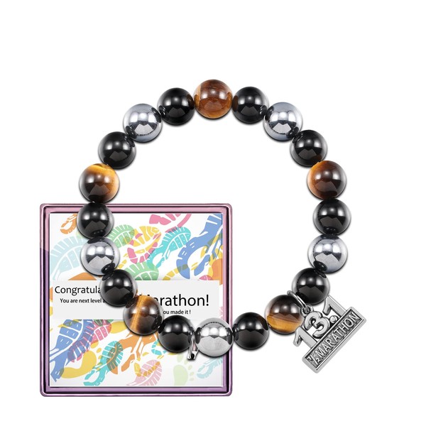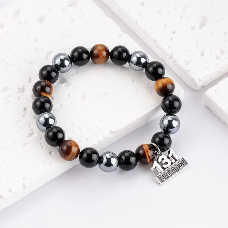 Marathon Runner Gifts, 26.2 Marathon Gifts,13.1 Marathon Gifts for Women Men,Purple Agate Beads Marathon Bracelet Half Marathon Gifts 26.2 Jewelry Gifts for a Marathon Runner (Black 13.1)