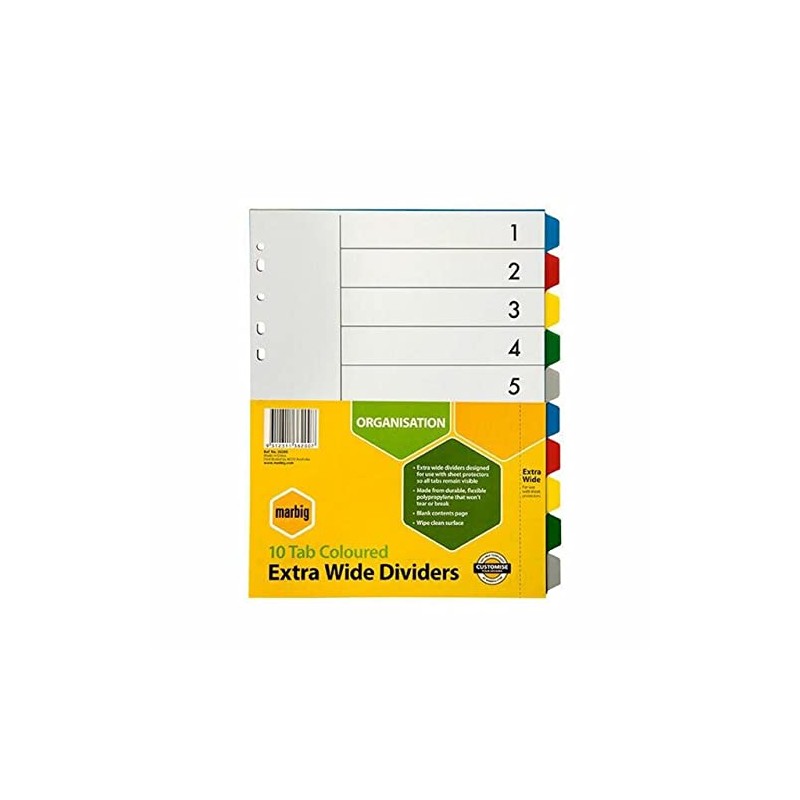 Marbig Indices & Dividers 10 Tab Pp A4 Extra Wide