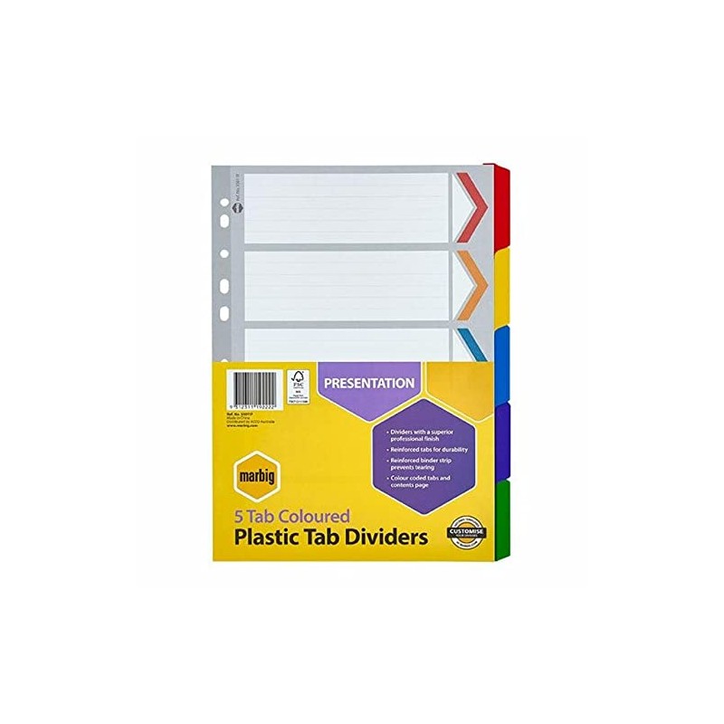 Marbig Indices & Dividers 5 Tab Reinforced A4 Colour