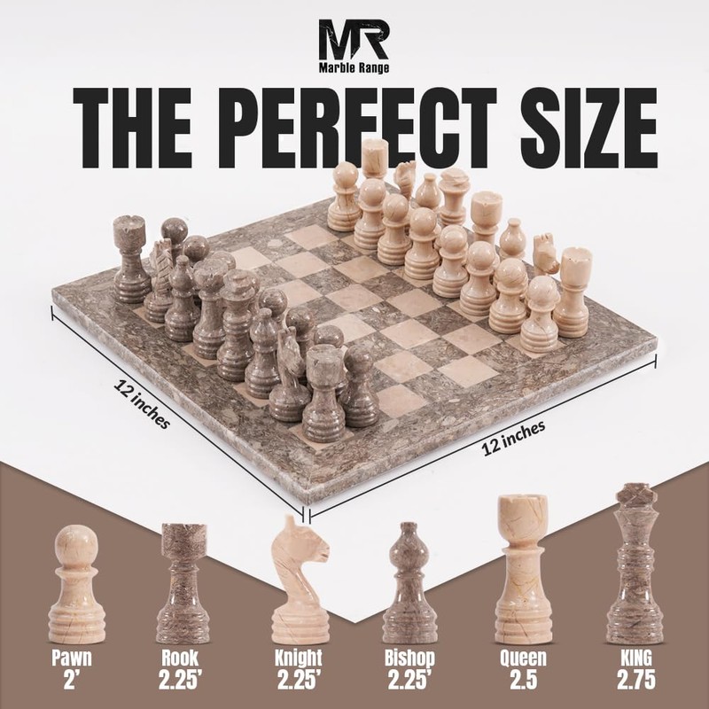 Marble Chess Set 12" Inches Oceanic and Verona Handmade Chess Sets for Adults, Marble Board Game for Family with Storage Box & 2 Extra Queen, Ideal Travel Chess Set & Home Décor