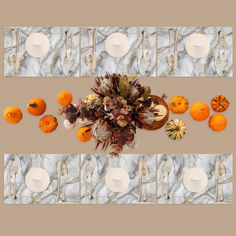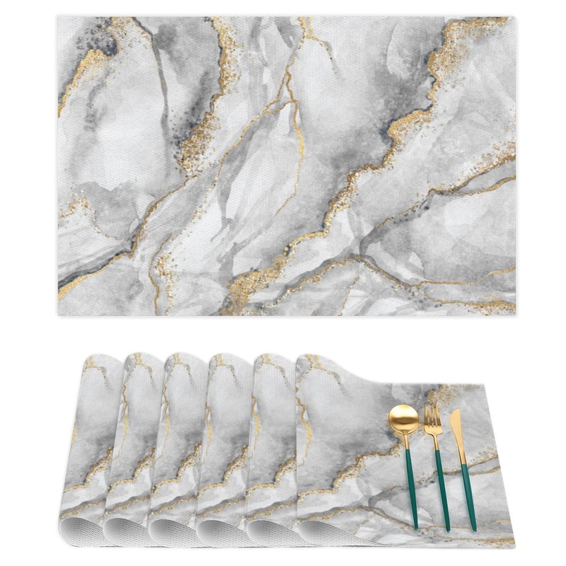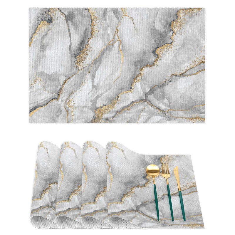 Marble Modern Texture Grey Placemats Set of 4 PVC Vinyl Non Slip Table Mats Waterproof Heat Resistant Place Mats Washable Wipeable Dining Table Mat for Kitchen Party Indoor Outdoor Decorative