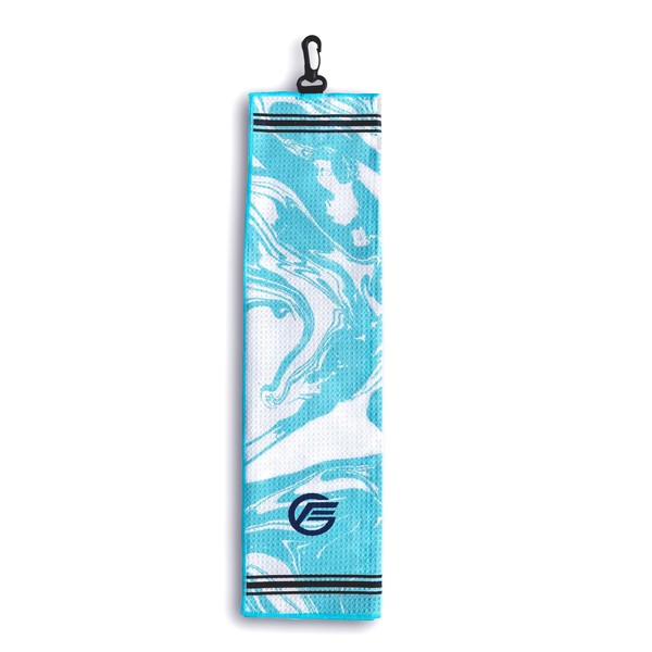 Marble patterned Golf Towel with Carabiner Clip, 50 x 30 cm, Blue and White (Blue, Trifold)