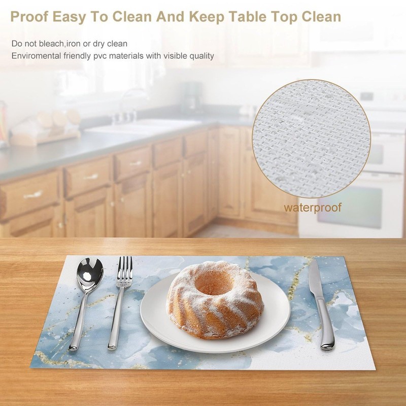 Marble Placemats Set of 4, Blue and Gold Table Mats Non-Slip Heat Resistant Washable Placemat for Party Kitchen Dining Table Decoration Indoor Outdoor