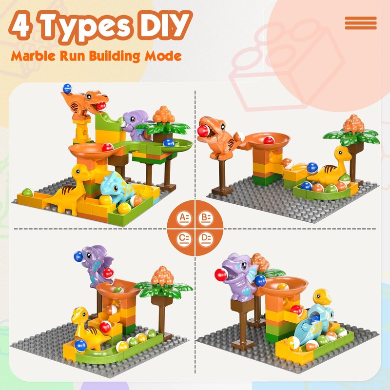 Marble Runs for Kids 4-8,Marble Run for Kids Ages 3-5 with Dinosaur Building Blocks,Dinosaur Toys,STEM Building Toys with 4 Marble Track Compatible with Major Brands