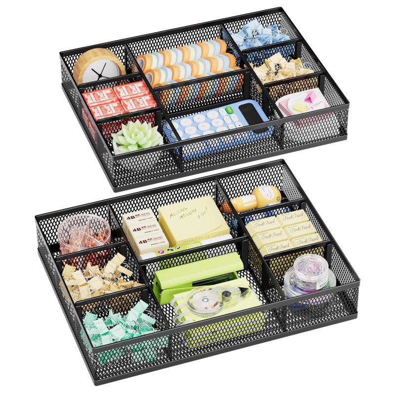 【2 Pack Drawer Organizer】: discovered the customer's demand for drawers and quickly launched the 2-pack mesh drawer organizer! This 2-pack drawer organizer gives you more space to store your supplies, which is specialized to comply with your desk, such a perfect supplies desk organizer must be the best choice for your office accessories