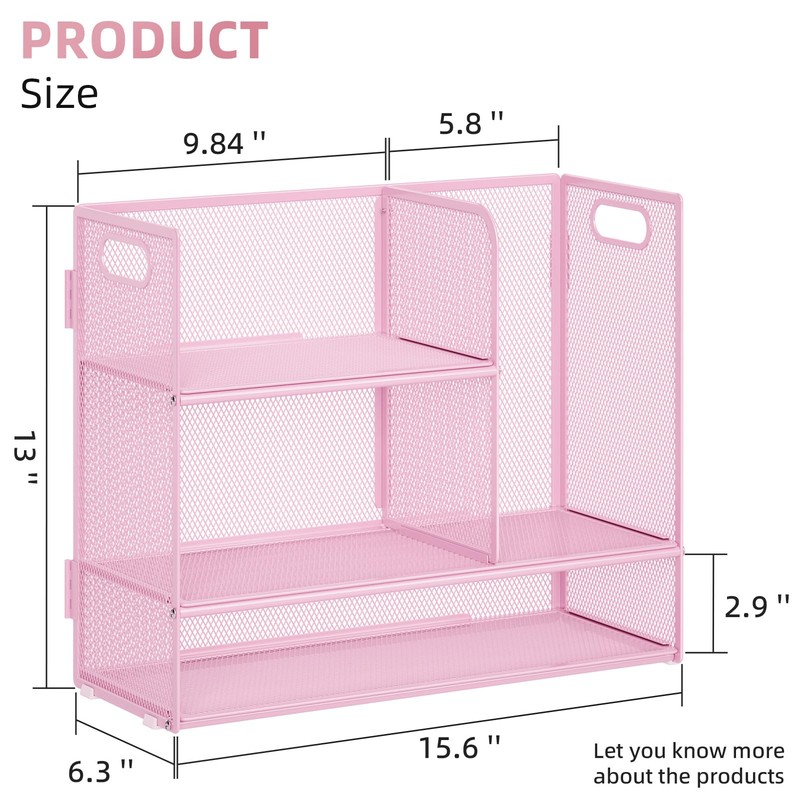 - 【Sturdy and Durable Structure】:The Desktop Storage Rack is supported by high quality iron mesh, with a smooth surface,ensures long-lasting stability for daily use and provides reliable protection for your belongings.