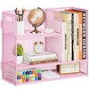 Marbrasse 3-Tier Desk Shelf Organizer with Handle, Desktop Bookshelf File Holder, Mesh Display Shelf Organizer Storage Rack for Office, Home, Supplies, Kitchen (Pink)