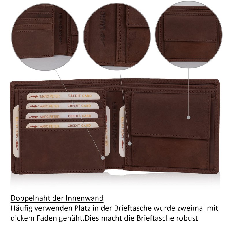 • Real Hunter Leather Wallet: the strong and sturdy construction of this wallet with thick thread for sewing the card slots and high-quality material makes Marc Peter wallet more durable. The coin pocket is made of full leather. and you can use this wallet for many days, it is more durable.