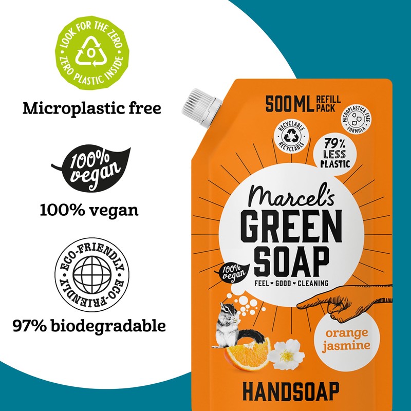 Marcel's Green Soap - Hand Soap Refill Orange & Jasmine - Handwash Dispenser Refill - 100% Eco friendly - 100% Vegan - 97% Biodegradable - 500 ML
