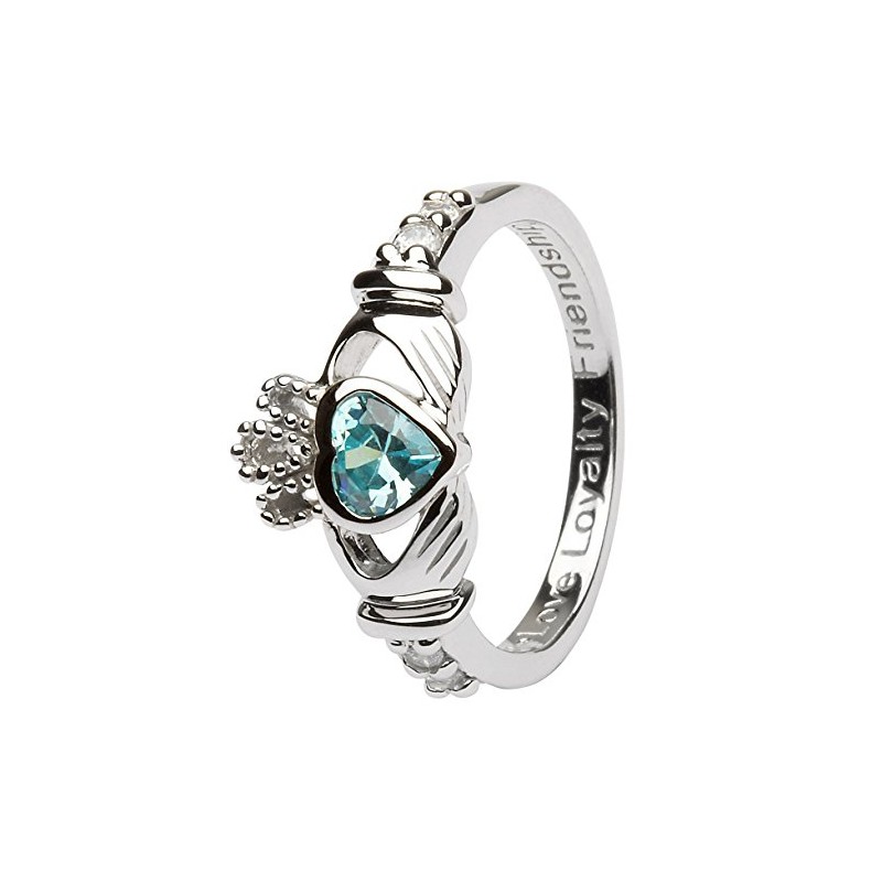 March Birth Month Silver Claddagh Ring LS-SL90-3 - Size: 7.5 Made in Ireland.