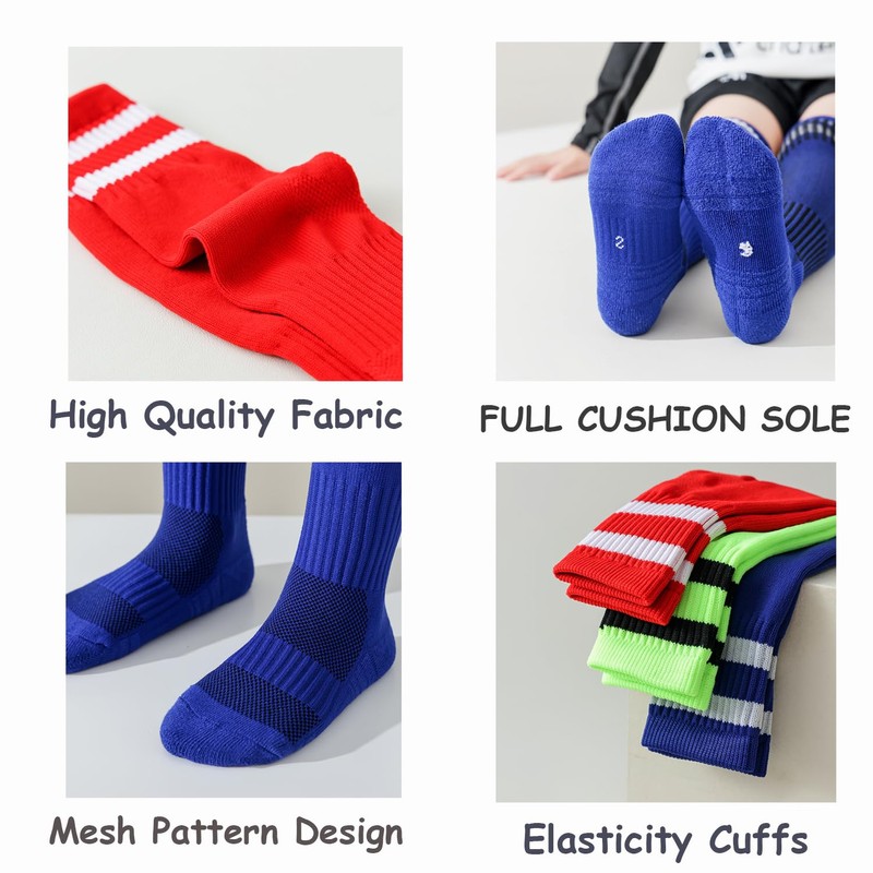 - High-Quality Fabric: Marchare boy soccer socks are artfully crafted using premium polyester and spandex materials, guaranteeing exceptional breathability and moisture-wicking abilities. Designed to keep kids' feet dry and comfortable throughout the day, they provide an enjoyable playing experience during sports and playtime.