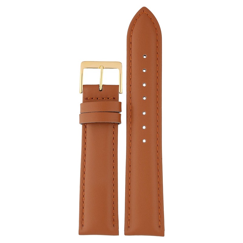 MARCHEL Smooth Leather Genuine Leather LLB Clasp in Gold Leather Bracelet Watch Strap Cowhide Leather Fine Leather, light brown, Classic