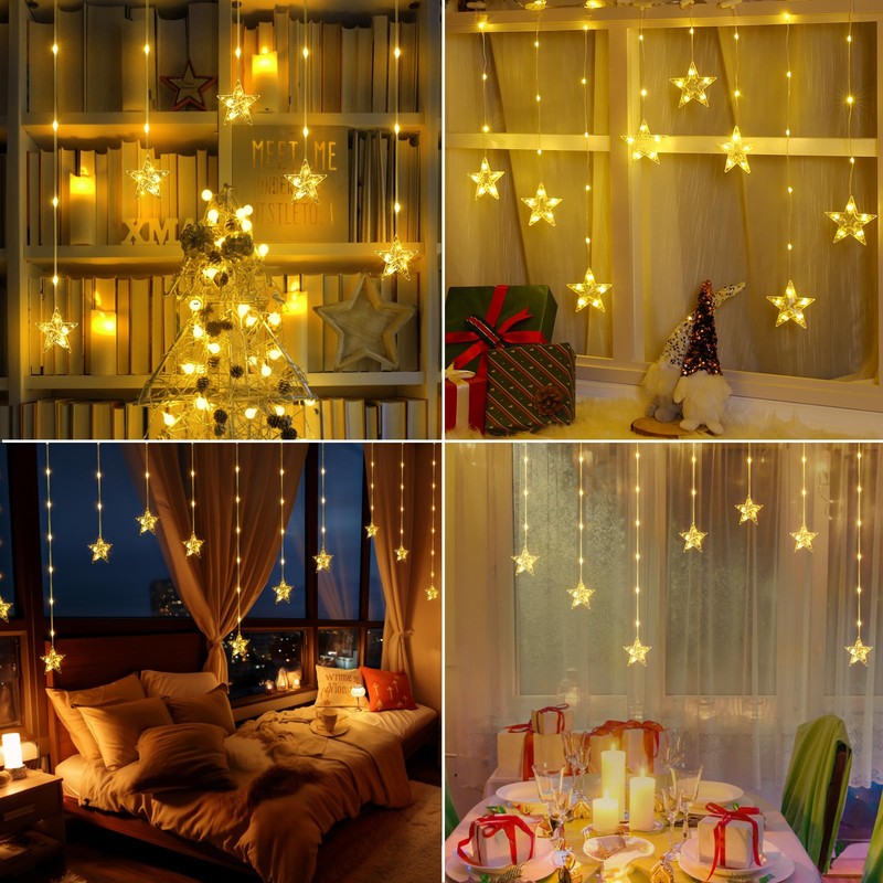 - ⭐【9 Stars with SMT Beads】Marchpower Christmas Star Curtain Lights consist of 9 Stars and 76 LED SMT Beads, which are more brighter than F5 Beads and have a beautiful lighting effect. Star string light total length 56.7inch+39.4inch lead. One star string light can fill a large window. Whether as it for Christmas window decoration, for Christmas gifts, or as a daily room decoration, it is a very practical and perfect choice, especially children will love this Christmas star curtain lights.