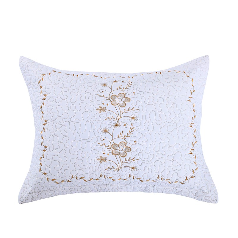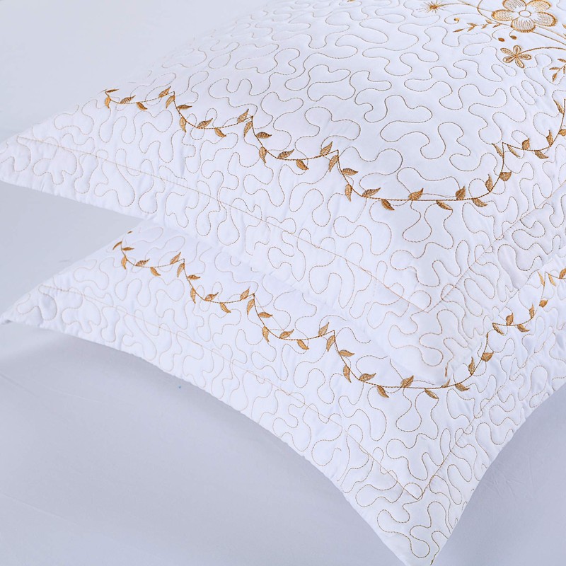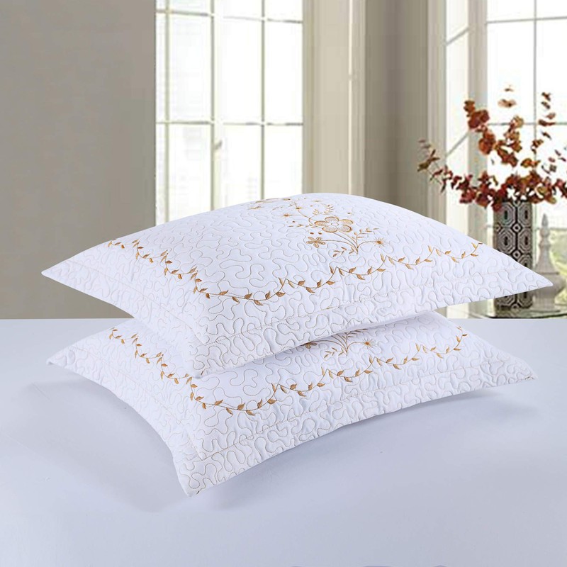 MarCielo 2 Pack Pillow Shams King Size Pillow Cover Embroidery (King, White/Gold)