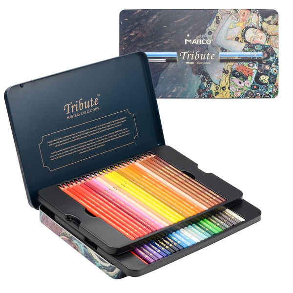 MARCO Colouring Pencils for Adults - Overlap up to 10 Layers Ideal for Art Students and Professional Artists Colouring Pencils Set in Iron Box 3320 Water Soluble Crayons 48 Colours
