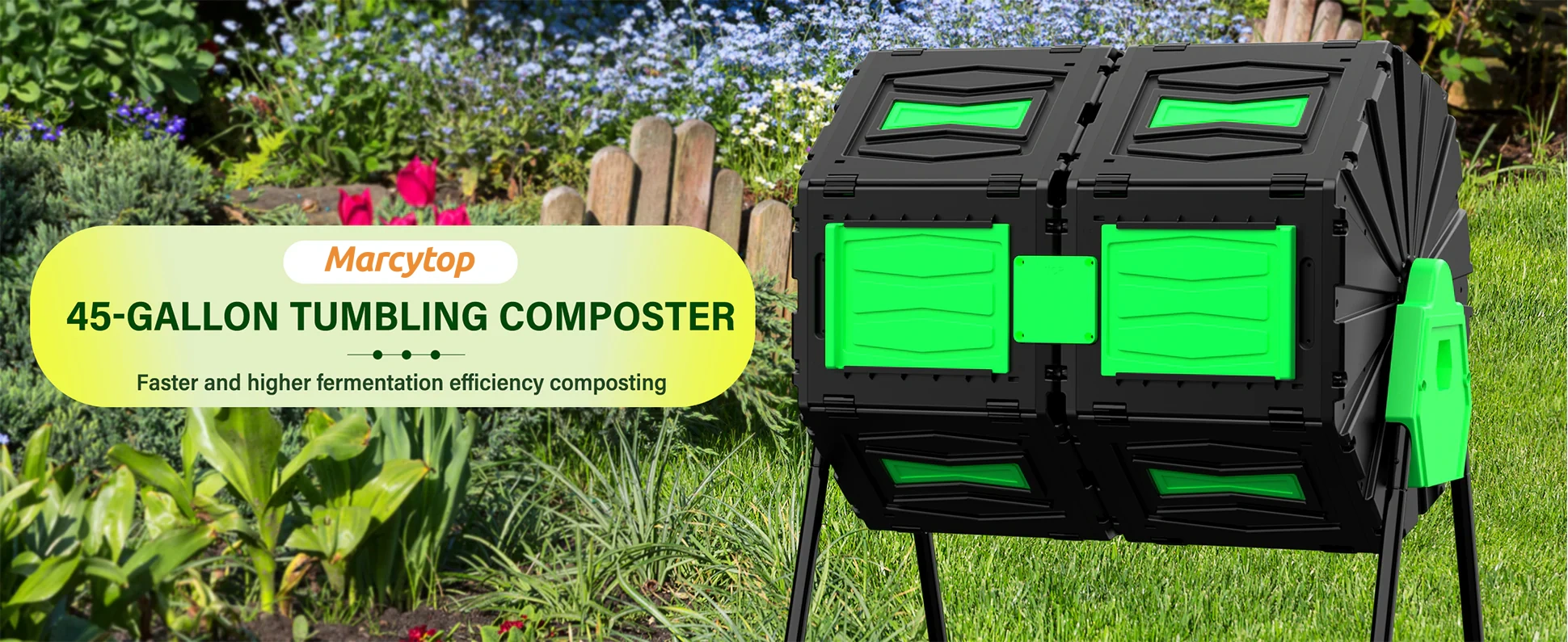 Marcytop 45 Gal Composting Tumbler Bin Outdoor Dual Chambers Fertile 360° Rotation Green
