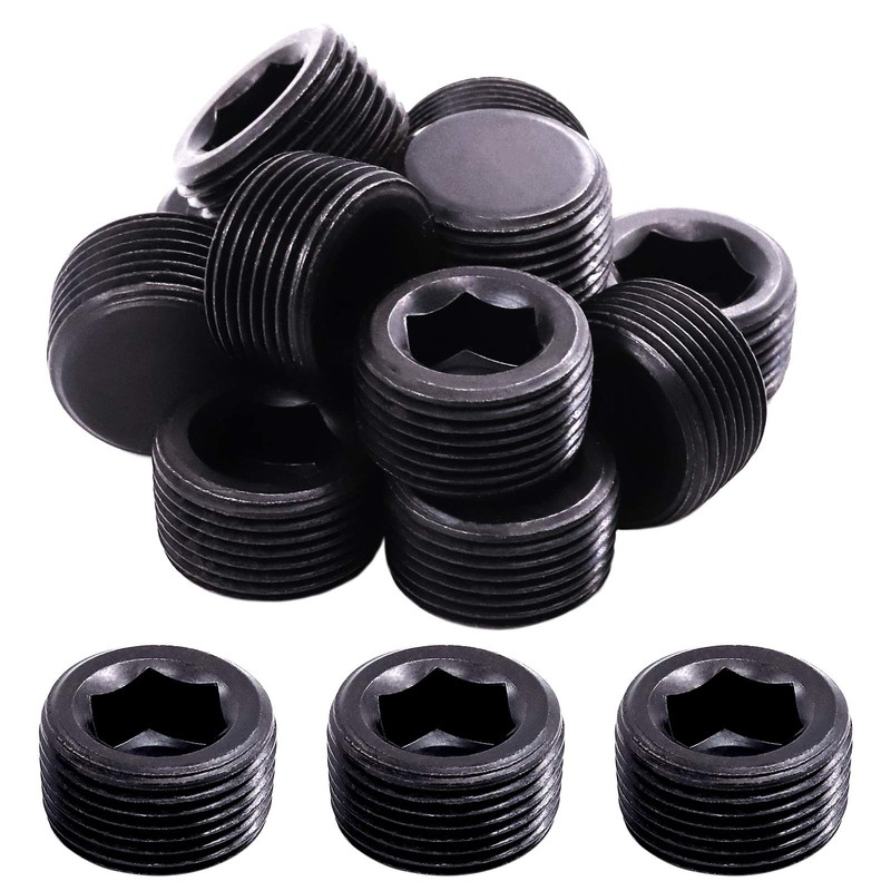 Mardatt 20 Pieces 1.9 cm NPT Plug Pipe Plug Fitting Carbon Steel Male Thread Hex Socket Pipe Plug Set