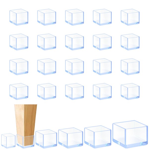 Mardatt 20Pcs 1" x 1" (25x25mm) Square Rubber Chair Leg Tips Caps, Furniture Leg Caps Chair Leg Floor Protectors Furniture Table Feet Cover Chair Leg Foot End Caps, Clear