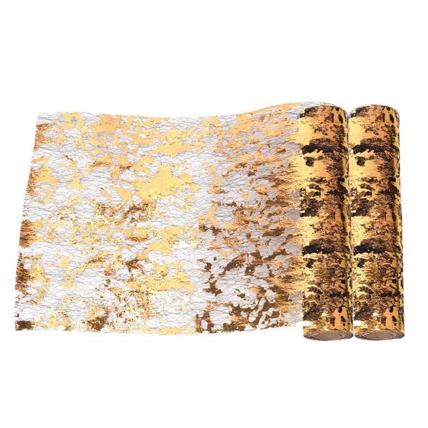 Mardatt 2Pcs Glitter Metallic Table Runner, 11in x 9Ft Thin Mesh Sparkle Tablecloths Sparkle Rectangle Runner Roll for Wedding Christmas Birthday Party DIY Home Decor(Black Gold)