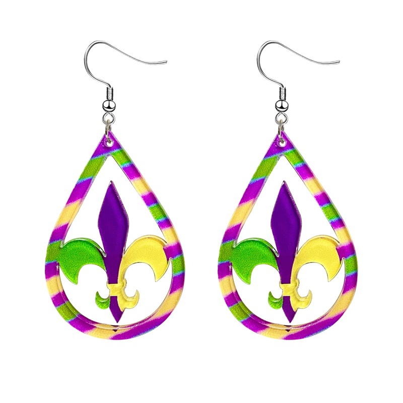 - 1、【Mardi Gras Earrings】:You will receive a pair mardi gras earrings which have three style can be choose.Designed in yellow, purple and green, it blends well into the carnival atmosphere.