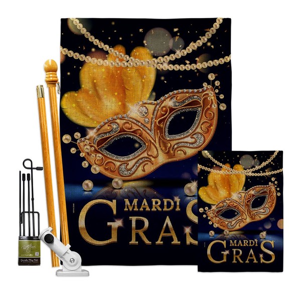 Mardi Gras Feast Patio Decor Burlap Banner Wall Art Flag Poles For Outside House Stand Outdoor Decoration Garden Tapestry Yard Masquerade Party Spring Carnival Festival Holiday French Gift Made In USA