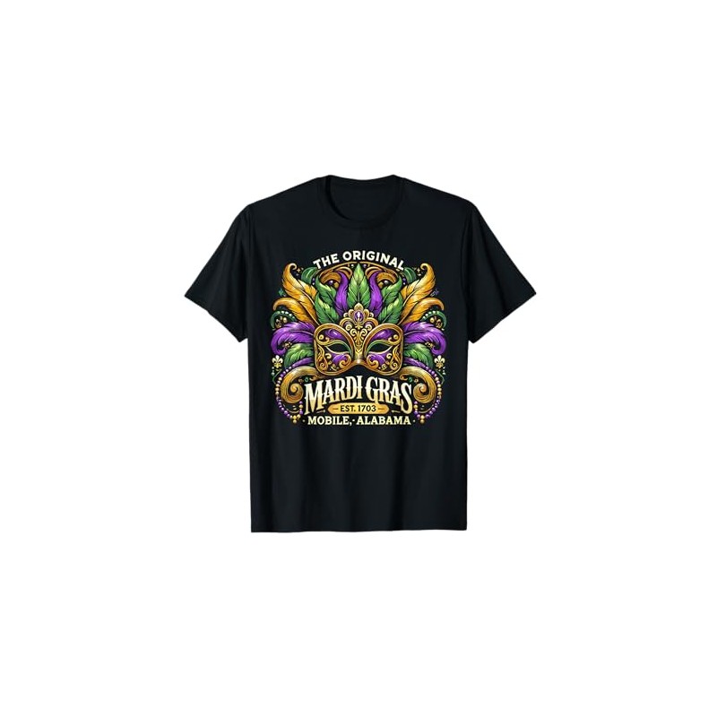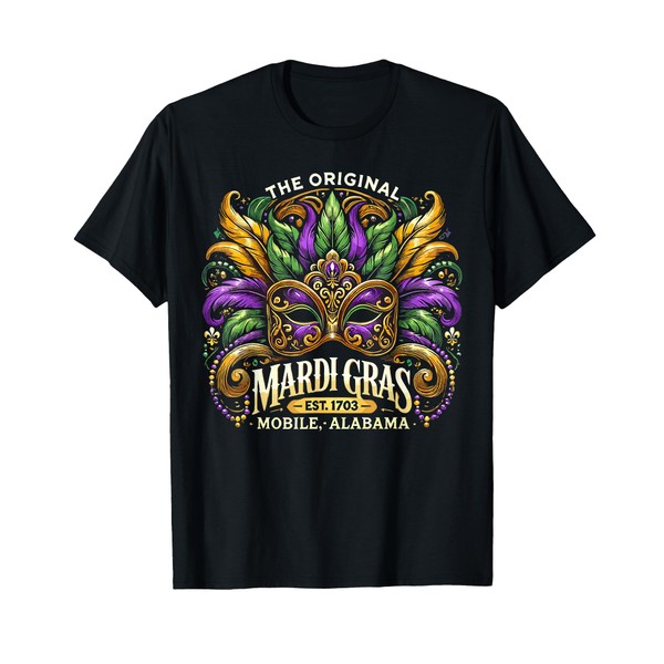 - The Original Mobile Alabama Mardi Gras 1703 - Unique design in traditional Fat Tuesday colors of yellow, purple and green. It is one of the Mardi Gras best carnival festival gifts for men, women and kids. All the family can wear it on a Mardi Gras parade.