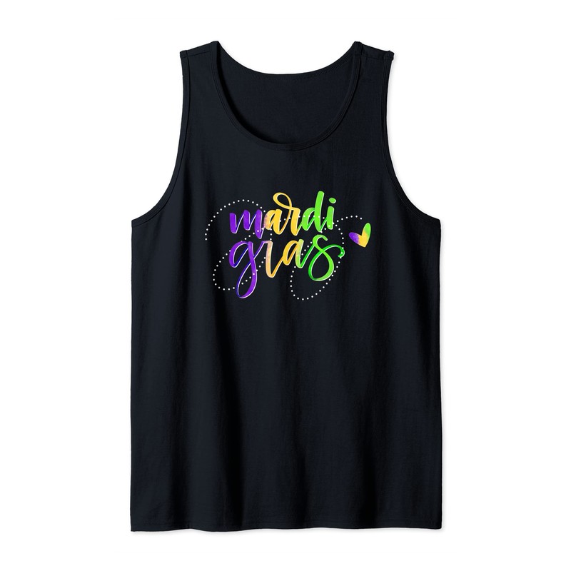MARDI GRAS Watercolor Hand Lettering Design with Heart Tank Top